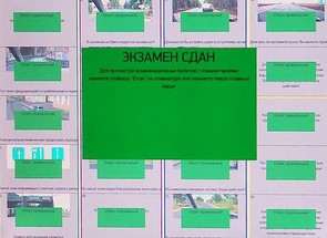 После объявления вашей фамилии по громкоговорителю вы заходите в кабинет и подаете инспектору свой паспорт. Он сличает соответствие фотографии в паспорте и вашего лица, если не возникло подозрений, вам называют номер стола с компьютером, за который вы должны сесть. На экране будет ваша ФИО, когда вы подойдете к компьютеру. Садитесь, сумку лучше повесить на спинку стула, на крайний случай можно положить на пол. Если инспектор разрешил вам приступить к сдаче экзамена, начинаете отвечать. Работать нужно будет только мышкой, клавиатуры нет. На экране будет 20 вопросов, отвечать на них можно будет в понравившемся порядке, так же можно будет пропустить вопрос и ответить на него позже. Если ответили все правильно, на экране загорится зеленая надпись «ЭКЗАМЕН СДАН», если же были допущены ошибки, надпись загорится красным «ЭКЗАМЕН НЕ СДАН». После вынесенного вердикта не нужно вскакивать бежать с криками сдал к выходу или с унынием собираться на выход, продолжаете сидеть и ждать, пока инспектор не назовет вашу фамилию, он все видит и все знает. После того, как вас назовут встаете и подходите к инспектору, он отдает вам паспорт и распечатанную бумагу с результатами экзамена, и указывает где вы должны поставить свой автограф о том, что вы согласны и подтверждаете вынесенный вам вердикт. И выходите из кабинета.
